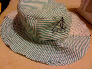 My silly son has a GIANT head, and I haven’t been able to find youthful sunhats for him… plus this one will match his sailor pants! I’m making another pair in the darker turquoise seesucker, cause the lighter seersucker is too light, it looks more like polished cotton until you’re close up, maybe because it’s a home dec remnant?