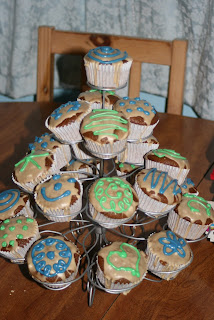and some “stout cupcakes with stout icing” also from said book… C wanted beer cupcakes, so I made them with craft beer instead of just Guinness (Anderson Valley Oatmeal Stout!), and then played around with decorations on top. I was pleased…