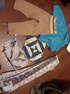 knit pants for the Bean, and a turquoise double knit raglan t-shirt