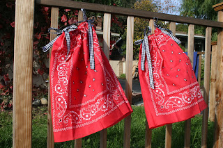 I just found a bunch of photos of gifts I never posted…I made two of these ridiculously easy baby dresses for the daughters of friends…I don’t remember where I got the tute, but search bandana dress tutorial….