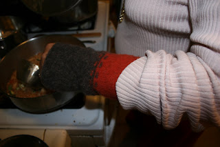 the sleeves got chopped down so many times (THREE FAILS! BOOOOOOO!!!!!) that now they’re wrist warmers for my mom.