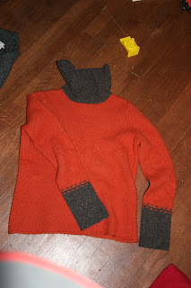 I started with this sweater, and cut the arms/neck off to make into pants…