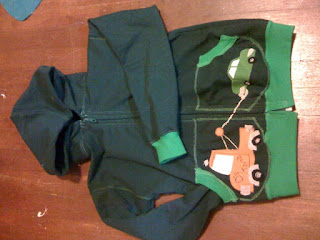 It’s a zip-up hoodie for D. He doesn’t fit anything store bought right now, so why buy and alter when I can just make myself (out of superior materials, tailored to my boy!)