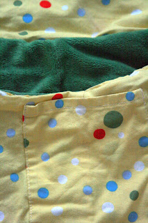 The outside has a pocket, and the inside is lined with super soft bright green minkee…