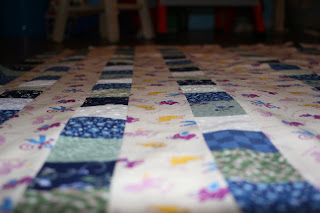 I really like the contrast, and I think it’ll be neat to coordinate with the grownup quilt (which was a fence rails design)