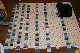 I really like the contrast, and I think it’ll be neat to coordinate with the grownup quilt (which was a fence rails design)