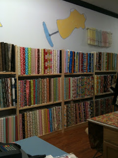 I ran into Lori, from the LA Modern Quilt Guild… she and her friend were buying loads of Echino prints to make that quilt on the back wall….