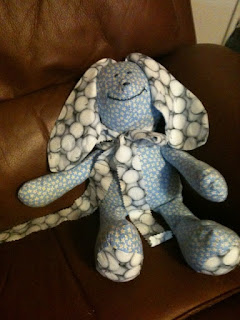 I saw a teeny scrap of this golf ball print at M&L last week (about 1/8 of a yard), and bought it to make it into SOMETHING for Tutu, and then realized it would make the cutest toy bunny for her…
