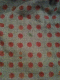 I bought 1/2 a yard of this amazingly cute/soft double gauze at Momen a few weeks ago… it’s pinker than this in real life, but is apples with leaves and caterpillars… LOVE it!