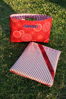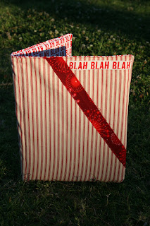 the outside is some remnant red ticking, with a stripe of the red fireworks and some fussy cut “blah” print