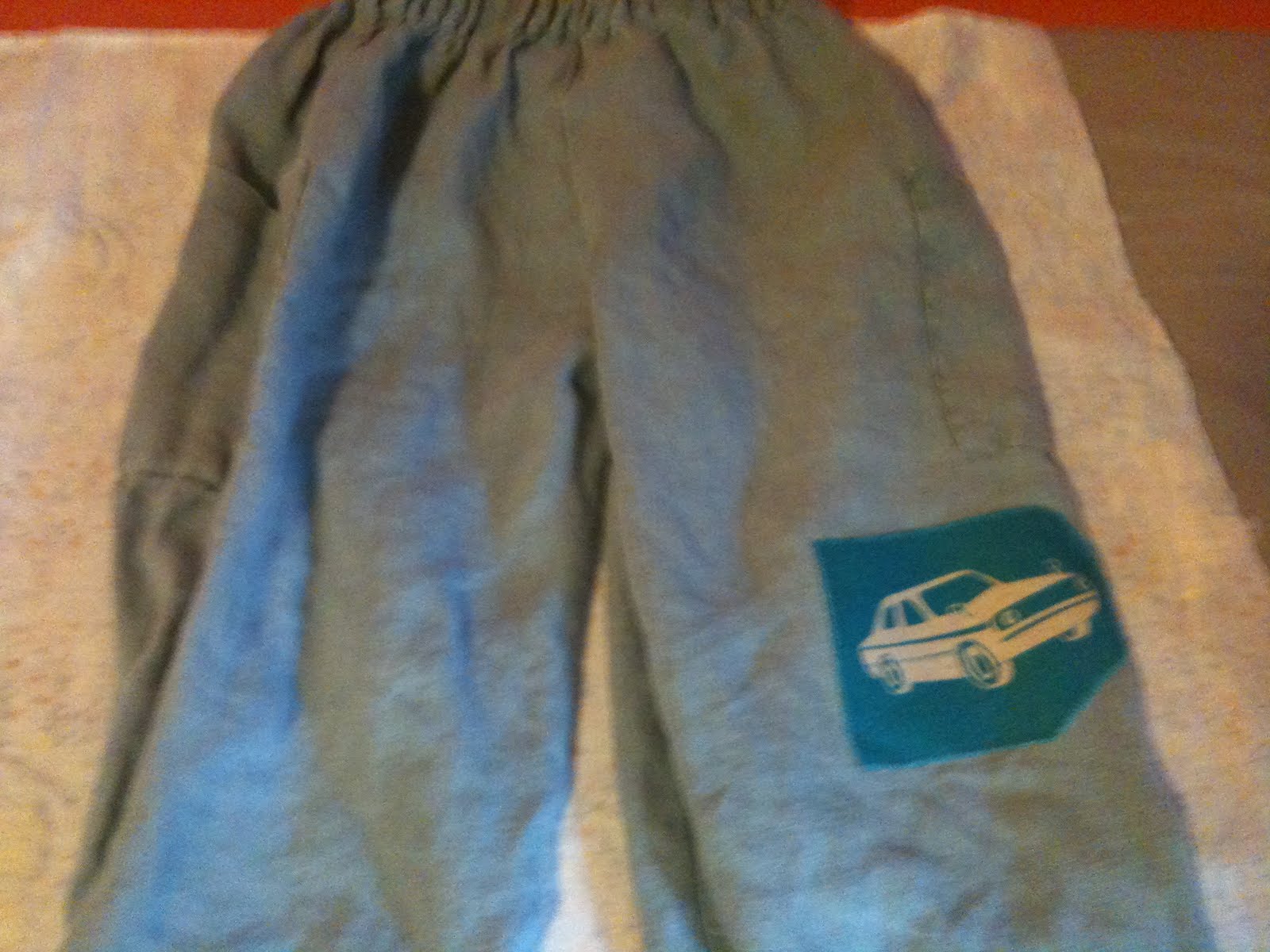 Anyway, D ripped some holes in the knee of a pair of Mama-made linen pants, so I needed to fix them… I save my scraps, so I *probably* have some of this fabric somewhere, but I wanted to do this quickly before the pants got swallowed by my to-do pile.