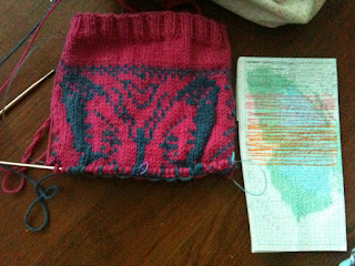 I’ve made good progress on these fair isle BUTTerfly pants, but I’m going to start unravelling/frogging now. I put in a whole extra inch of blank space below the waist ribbing, and a border on top, and that’s just added WAY too much length. My tiny bean could pull these up to her armpits if I keep going!Hence: ribbit, ribbit/rip it, rip it. I will frog.