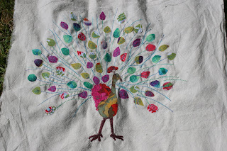 yesterday, getting desperate, I asked D to draw me a bird, and he and the bean decided to color peacocks.
