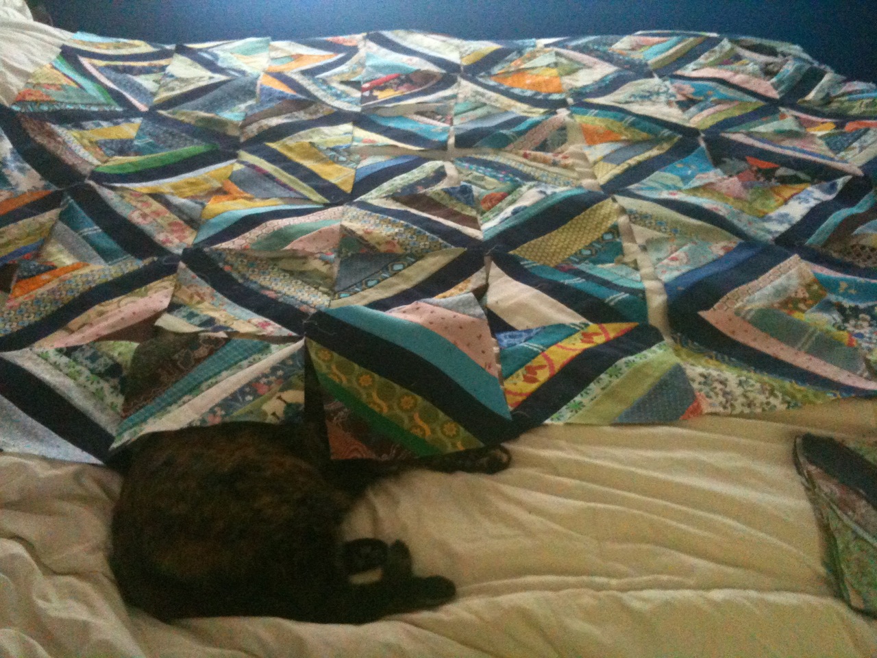 I had a very miffed kitty cat who was completely unwilling to move or help in any way, but she didn't mind when I put pieces on top of her, so… fine, be that way, Tisa!