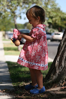 yeah, Babydoll (that’s her name, seriously) got a matching dress… (a la the ones I made before, I didn’t match the STYLE, just the FABRIC…)
