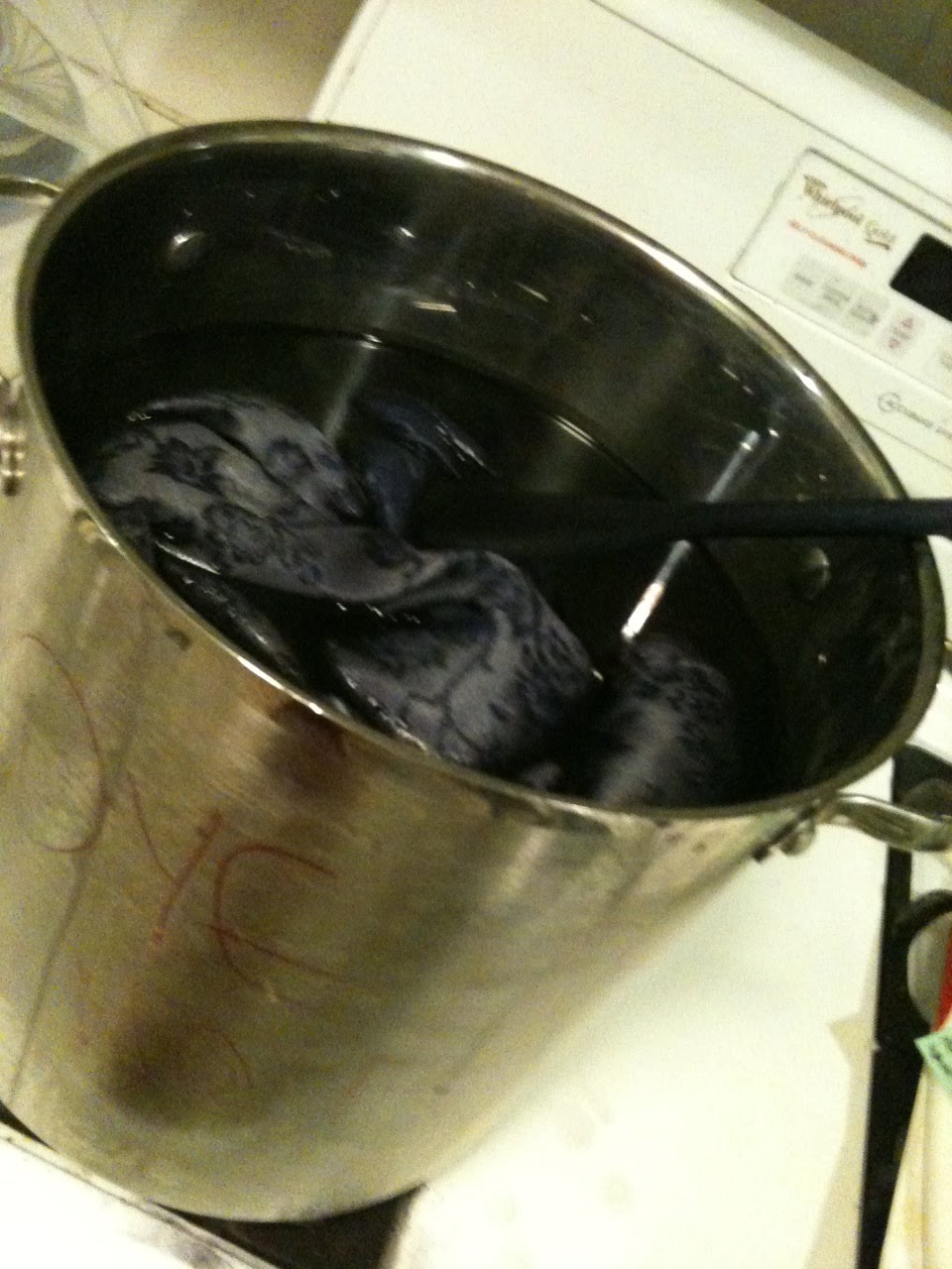 Having a dyepot means I can cook my curtains, taking them from matchy-matchy to a pretty contrasty dark blue!