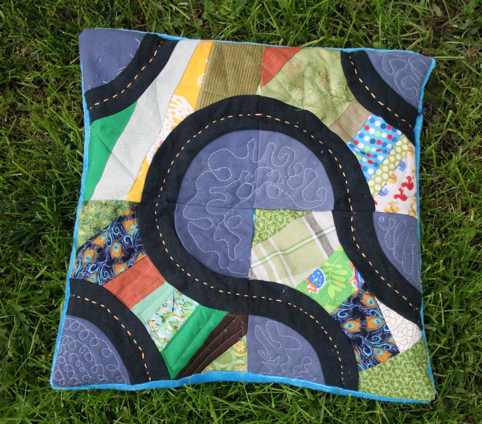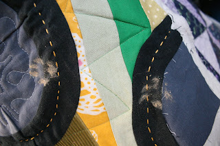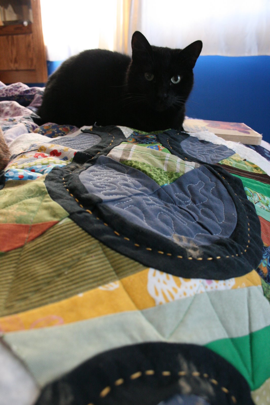 I tested lots of quilting designs, quick and dirty, and then the kitties decided that they were allowed to walk all over it with their muddy paws…