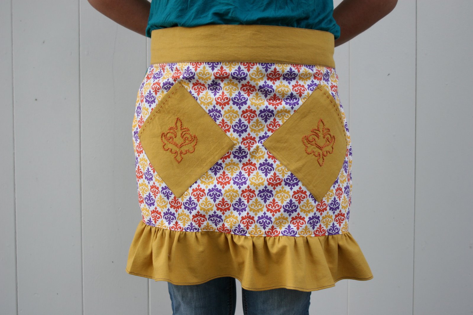 here’s the first one… an adult 1/2 apron… with fleur de lis all over it…