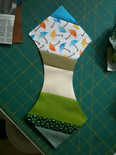anyway, after you sew enough strips to cover the newspaper, press, flip, and use the newspaper as a template and cut it out.