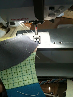 once the corner pieces are done, I pressed them flat, and sewed a corner piece to each center piece, again, convex on top of concave.