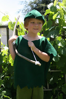 But then, it turned out he wasn’t D, he was Robin Hood, and he needed a green hat to be Robin Hood. So I grabbed some felt, and made him a tunic and a hat.