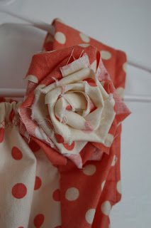 I made rose clips from the scraps. 1 big, from both fabrics, 1 small, from the mostly-coral-fabric