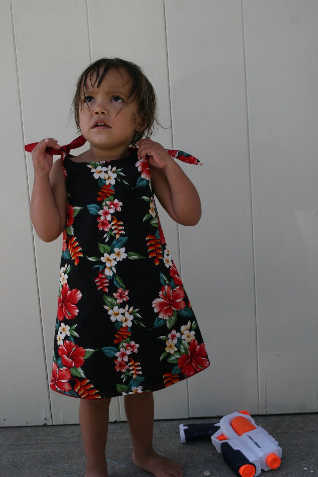 I decided to try the simple dress again, without the shirring, but with knotted straps.