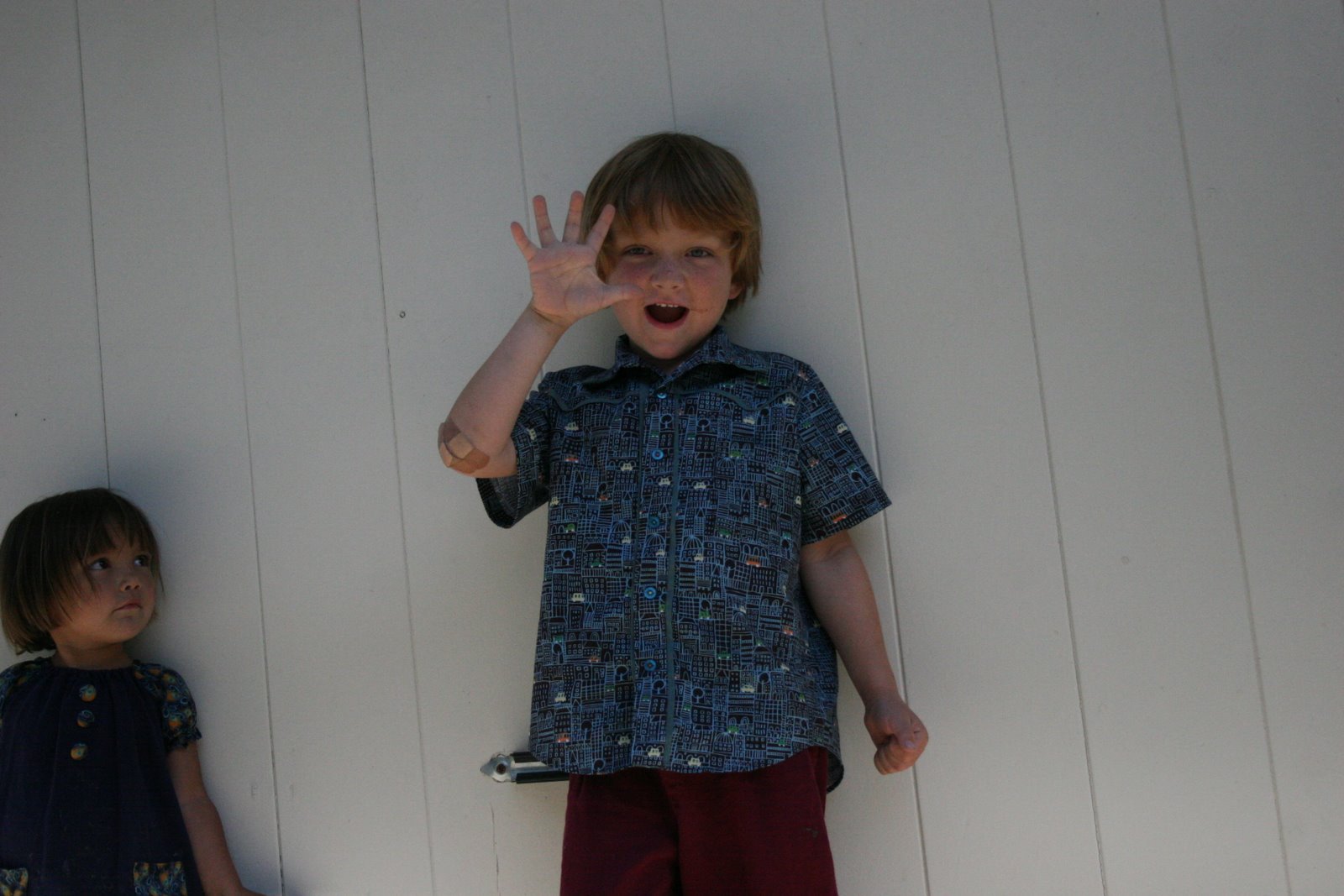 Last week was D’s 5th birthday, and he told me he expected to get a new birthday shirt (last year he got this one, and it’s still a hit, but it’s getting REALLY short on him). So I made this one, remember?