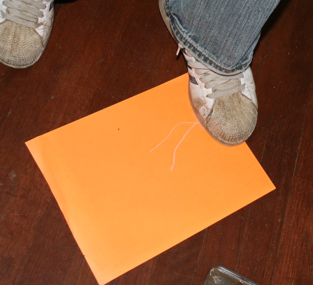 2 pieces, taped together at 1 end, cut to the same length. (I’m holding  the taped end down with my foot)