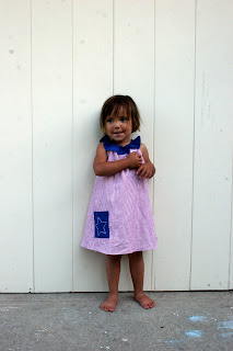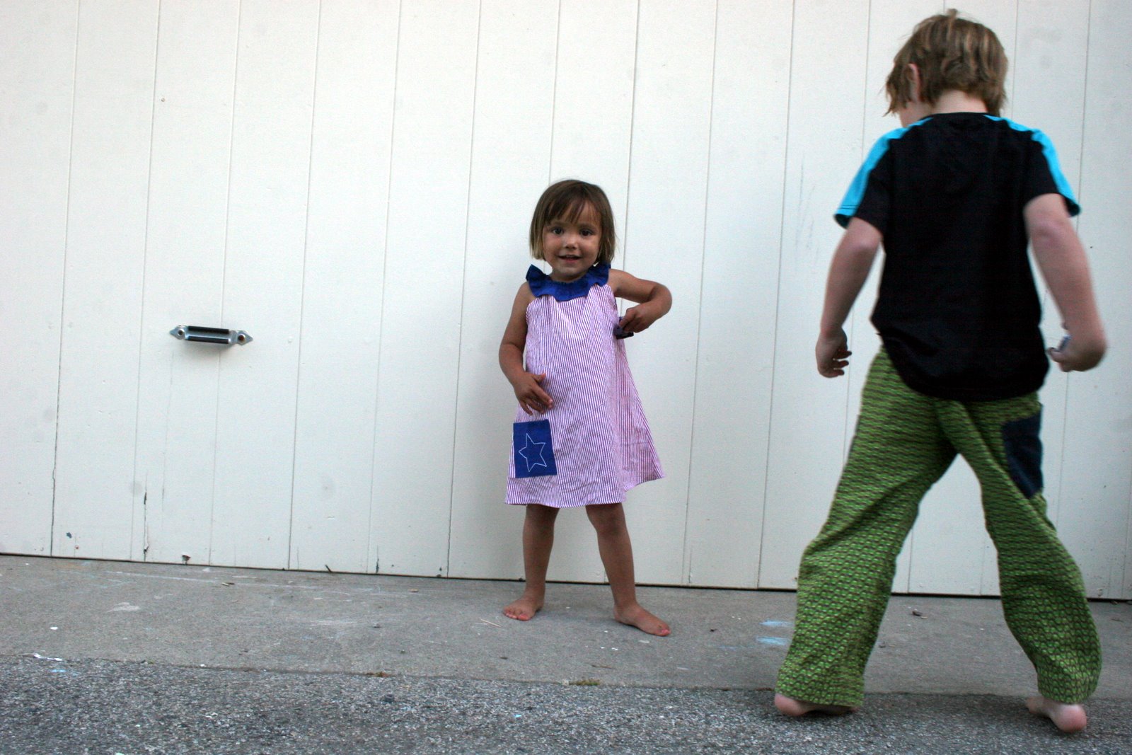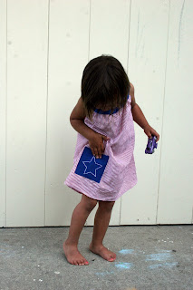 isn’t it patriotic? I used some white sashiko thread from my Cathedral Windows quilt to backstitch a star on the pocket (and I only did 1, despite protestation from a certain little miss)
