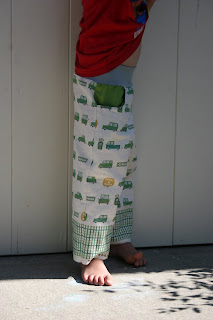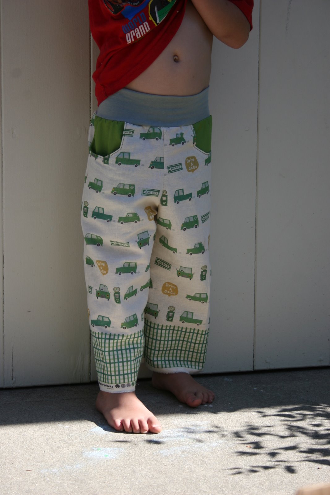 (The trick to awesome pants like this is awesome fabric, which unfortunately costs a bundle. But it was on sale at momen + for 1/2 off, so it was only $10/yd, I only needed 3/4 of a yard, it was in D’s favorite color, and it was my birthday. So now he has cute Mama’s-birthday-pants.)