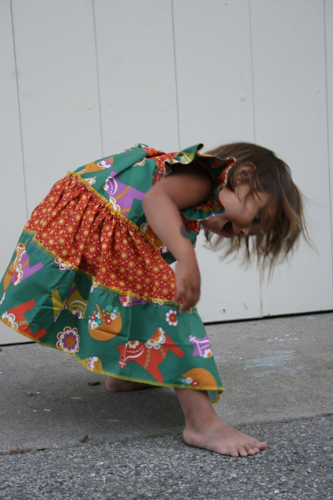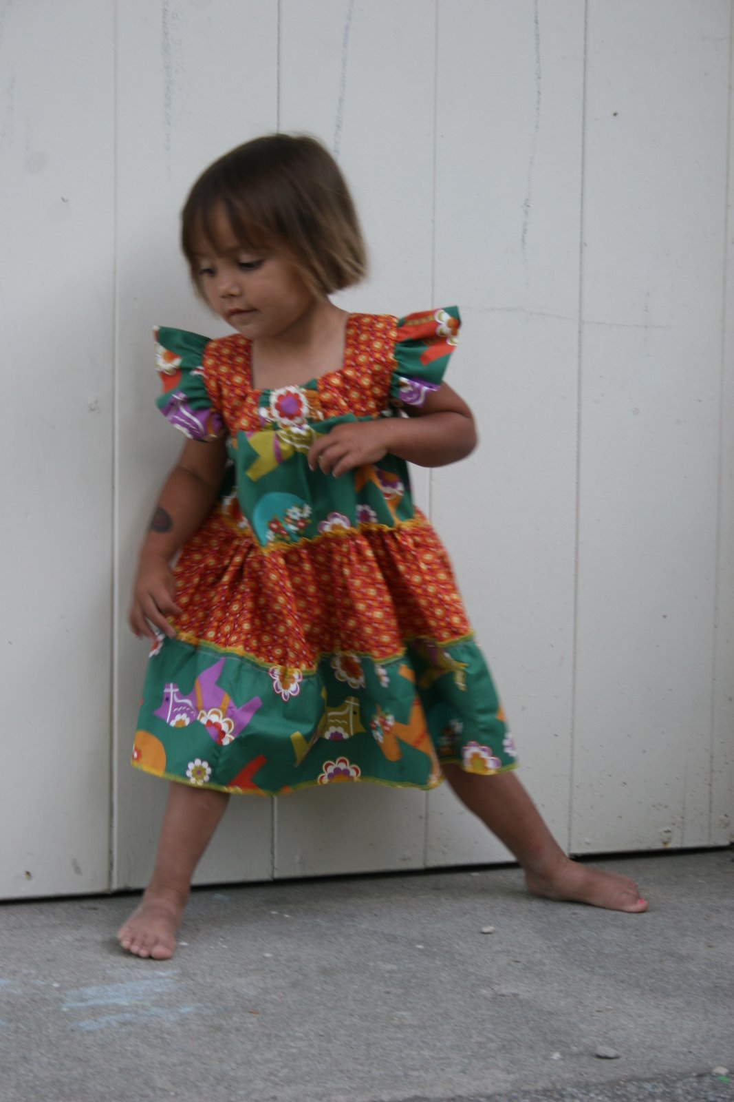 Of course, I can’t ignore the Bean. So, inspired by the pretty fabric, here’s her Mama’s-birthday-dress: