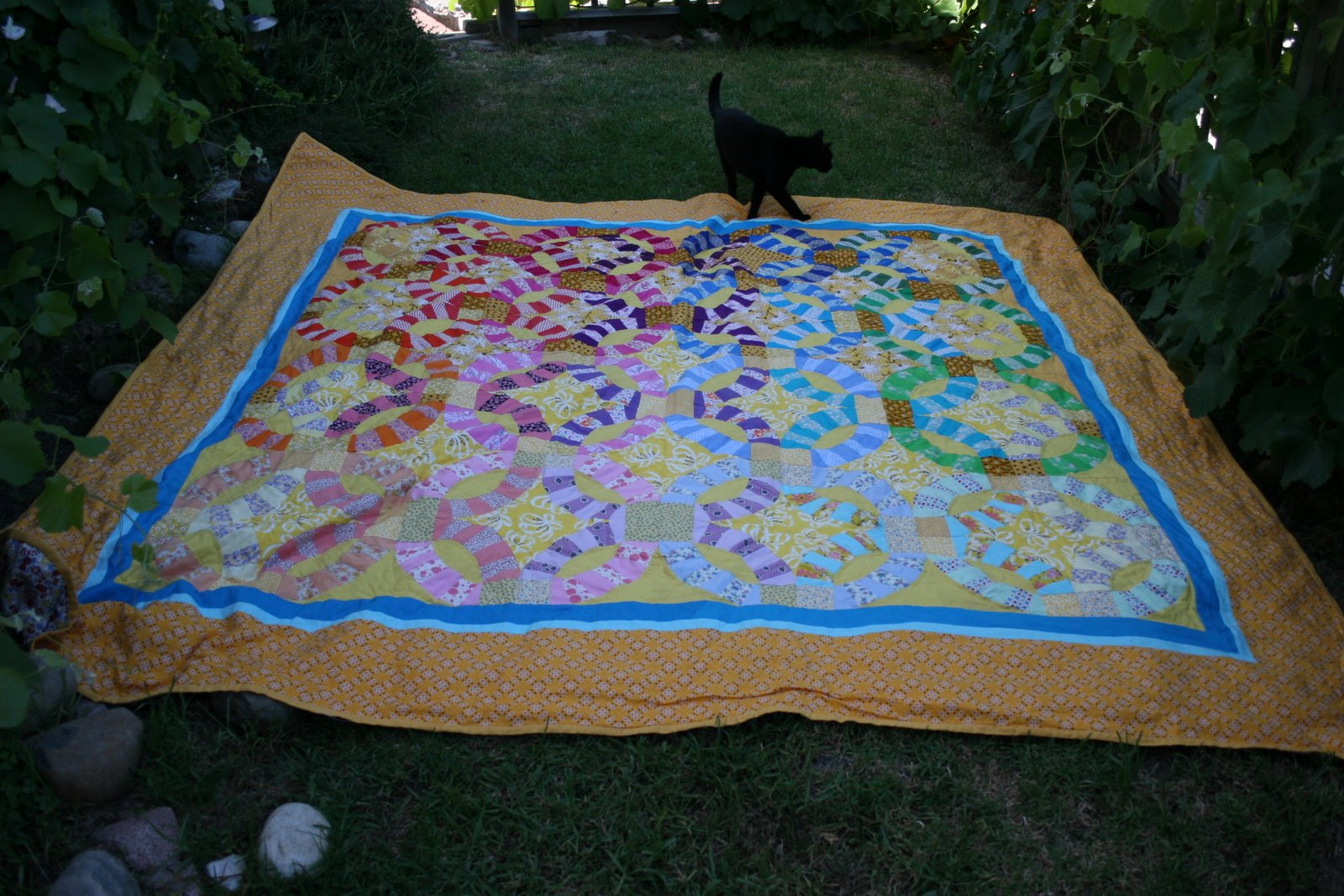 Aneela Hooey did this awesome QAL earlier this year, and I loved it. (she calls it pickledish, but here in the USA, it’s a double wedding ring, and a pickledish is a quilt with triangle-y pieced rings, so I never know what to call it)… Anyway, I made like 2 rings, and then quit, because I couldn’t keep up….