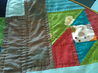 I'm working on a big baby quilt right now, and I'm quilting inside each shape. I'm certainly no expert, but I was wondering if anyone would be interested in either product reviews (like "DON'T use the gold Fons and Porter thimble or your finger will turn green. Do use the cheap Dritz one on your middle finger to push the needle, and a super cool rubbery one (Japanese, Little House brand) on your thumb to help pull the needle" etc? ); or a tute on how I hand quilt? As a self-taught quilter, I can tell ya ALL the wrong ways to do things, and maybe help a little….