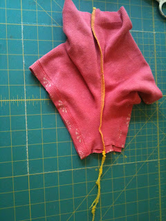 Cut off the remaining side-seams (the part left at the bottom of the J), and line them up, with the J seams straight. (hmmm. I think the picture above is WAY more clear than my words.)